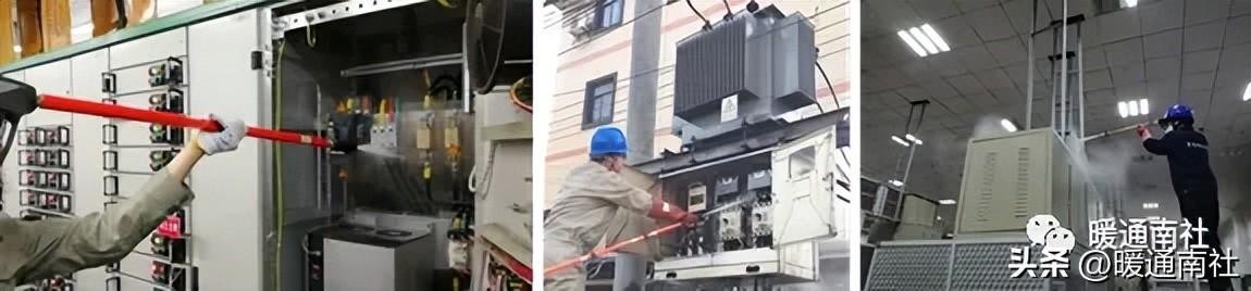 二、气吹清洁:采用压缩空气吹扫开关柜、端子排等,并将锯末等绝缘介质喷洒至被清洁物表面,以清除污垢。该方法适用于户外设备或绝缘子的清洁,但存在以下局限: