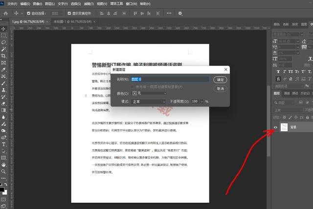 第一步,打开带有水印的图片。第二步,双击背景图层。第三步,在弹出的属性窗口中输入一个名称并点击确认,这一步是默认图层0