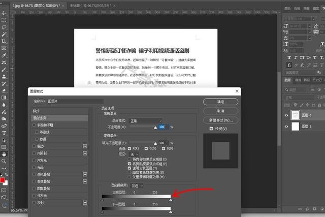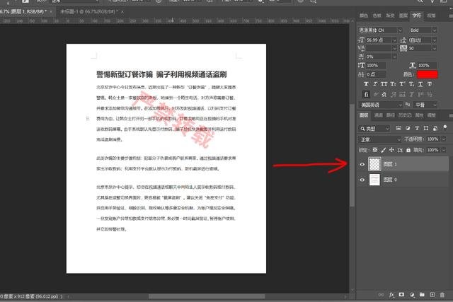 第六步,将图层0拖动到图层1的上方,并点击图层0前面的小眼睛,显示该图层。温馨提示:对于初学者来说,图层的移动和新建操作容易出错,需要多加练习,熟悉后就变得简单了。