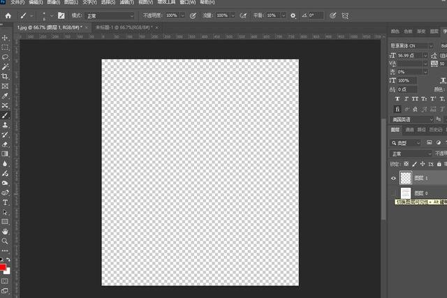 第四步,点击图层0前面的小眼睛,隐藏该图层,查看新建图层1的效果,这是一个透明图层
