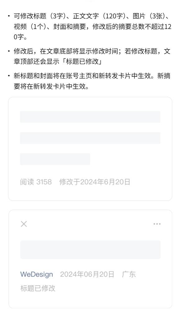 修改后,文章底部将标注修改时间;如修改标题,顶部还会显示「标题已修改」。