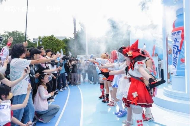 《原神》与饮料品牌脉动的合作响应“国家健康年”倡议,将游戏元素融入运动场景。广州大学城的快闪活动吸引了众多玩家,现场有装扮成《原神》角色的舞者带来运动舞蹈表演,受到年轻人欢迎。
