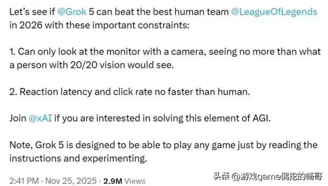 从AlphaGo击败李世石,到OpenAI统治DOTA2,再到如今Grok 5冲击LOL韩服,AI正在一步步攻克人类引以为傲的竞技领域。