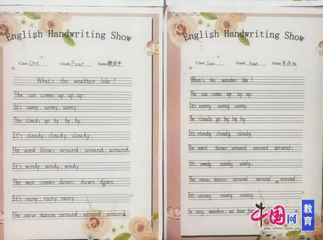 三、四年级则举办了“英语书写明星挑战赛”,三年级学生书写与颜色相关的诗歌,四年级则抄写自己喜爱的英文歌词。比赛现场井然有序,学生们认真专注,展现了良好的书写习惯和端正的态度。