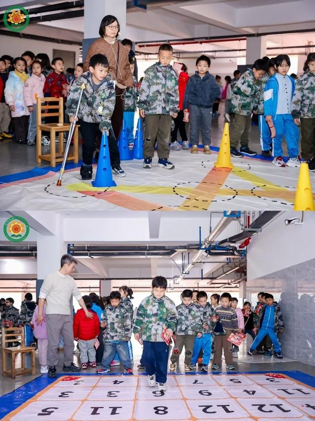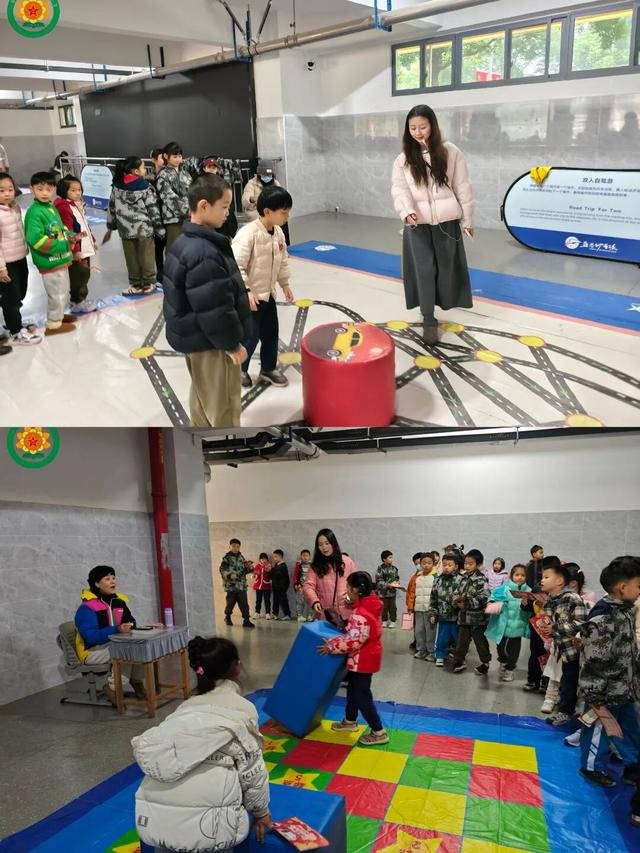 室外同样热闹非凡,8个精心设计的游戏项目等待着孩子们的挑战。阳光洒满操场,孩子们在各个关卡间忙碌穿梭:滚动长方体时,他们认真计算轨迹;铺马路环节中,他们合作拼接积木,感受图形与空间的关系;双人自驾游项目中,他们根据指令协作前进,欢笑声不断;堆高游戏和纵横四海活动中,他们比拼高度或完成方位挑战,每成功一次都充满成就感。每一枚奖章都代表着他们的努力与成长。