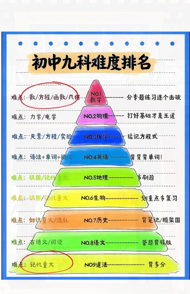 其实,只要掌握每门学科的难度层级,有针对性地制定学习计划,就能达到事半功倍的效果,轻松应对九门课程!