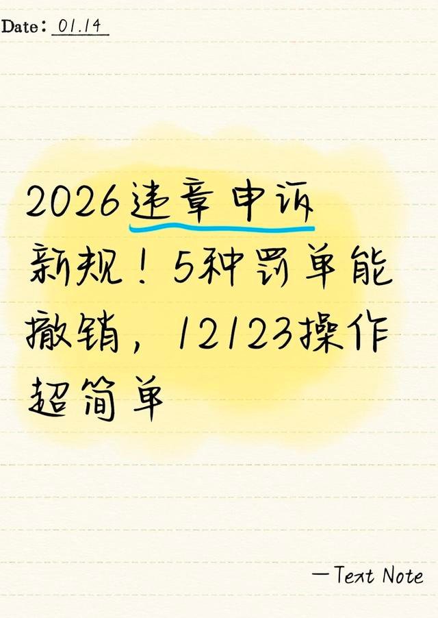 2026年1月起,违章申诉政策迎来重大调整,明确5种情形可直接撤销处罚,并优化了“交管12123”线上申诉流程,不再需要前往交警大队排队办理,只需在家3分钟即可完成申请。只要证据充分,成功率高达90%以上!本文将详细讲解哪些情况可以申诉、如何准备材料、操作步骤以及常见误区,帮助大家避免不必要的扣分和罚款。