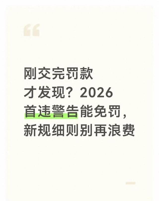 2026年,全国多个城市正在优化“首违警告”政策。简单来说,是为了体现执法的人性化,对初次违规且情节较轻的车主给予一次改正机会。该政策覆盖了229种轻微违法行为,只要符合条件,结果就是:不罚、不扣。