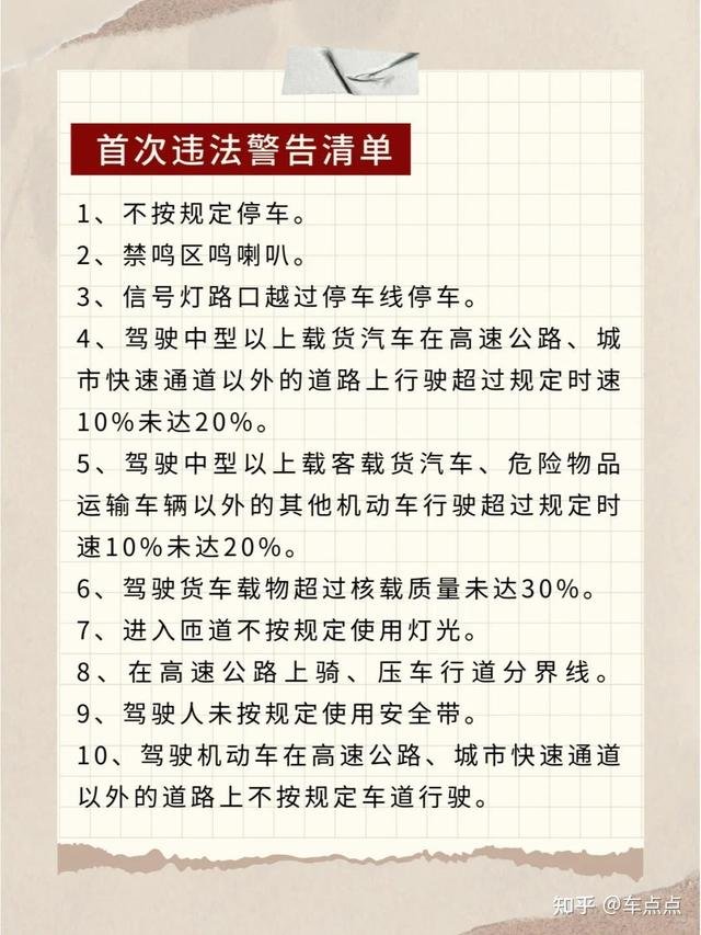 第一,违法行为必须属于“229种轻微违法清单”中的一种。例如常见的违停、未系安全带,或者高速外道路超速10%-20%,这些都属于豁免范围。