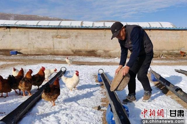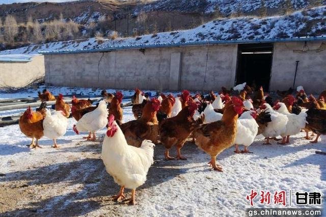 中新网甘肃新闻1月13日电 随着冬季的深入,走进古浪县黑松驿镇黑松驿村的养殖基地,可以看到一群群羽毛鲜艳的走地鸡在阳光下悠闲地活动,伴随着此起彼伏的鸡鸣声,呈现出一派热闹的景象。