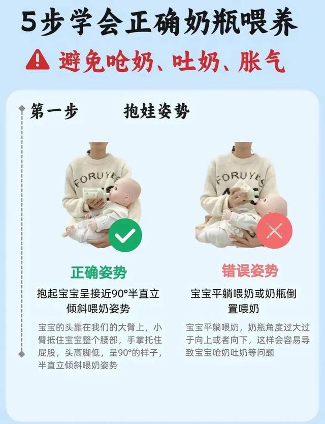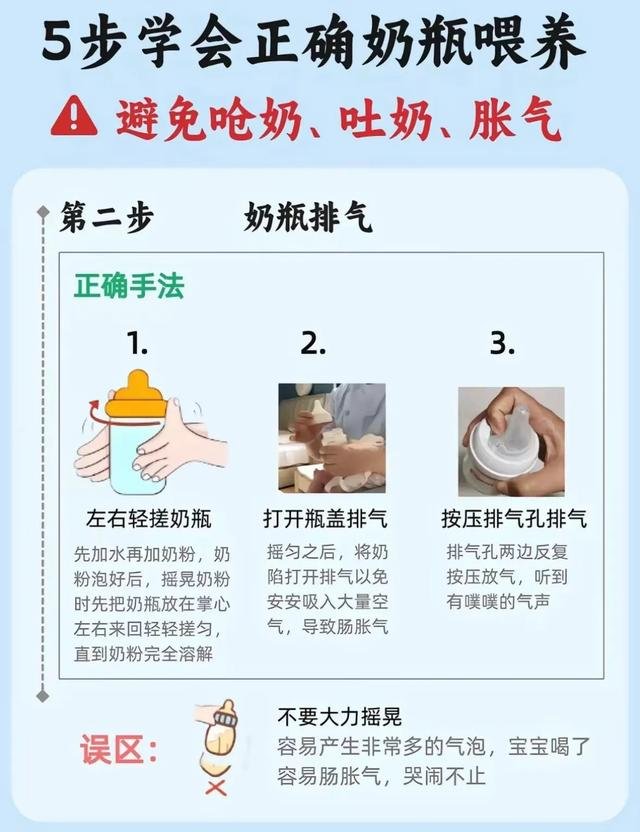 其实,奶瓶喂养远不止“把奶嘴放进宝宝嘴里”那么简单,其中有很多需要注意的地方。抱宝宝时要保持半坐姿,避免让宝宝平躺;冲泡奶粉时不要用力摇晃,而是轻轻左右转动奶瓶帮助排气;喂奶时奶瓶要倾斜45度,确保奶嘴充满奶液;让宝宝自然地含住奶嘴,不要强行塞入;喂完后一定要及时拍嗝。这五个步骤缺一不可,每一步都做好,就能有效减少呛奶、吐奶和胀气的情况,让宝宝更舒适,也让妈妈更安心。