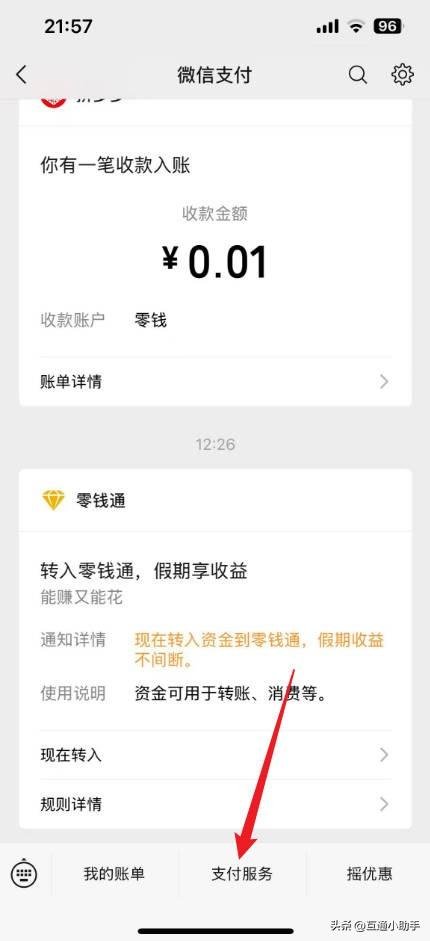 1、打开微信APP后,进入“支付服务”页面,点击“支付服务”选项。