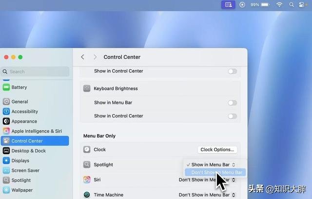 在 Dock 栏中快速右键单击“系统设置”图标,即可显示所有设置面板的完整字母顺序列表。