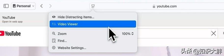 Safari 的视频查看器(画中画)会将视频转换成小型浮动窗口。