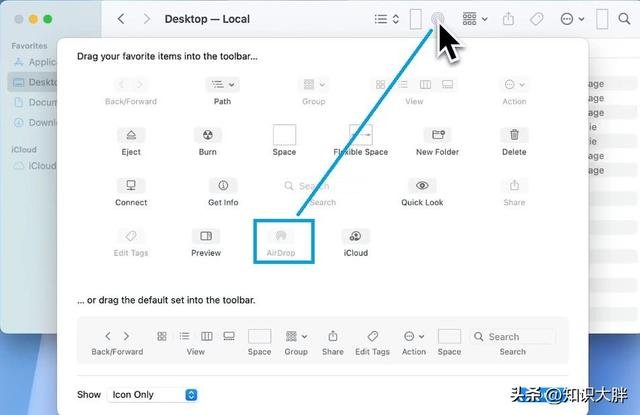 将 AirDrop 保留在工具栏中,以便您可以轻松地拖放文件。