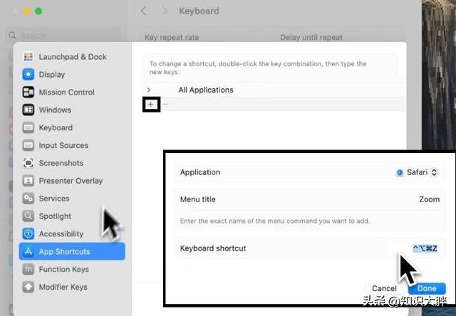 前往“系统设置”>“键盘”>“键盘快捷键”>“应用程序快捷键”。