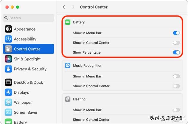 系统设置 → 控制中心 → 电池 → 显示百分比