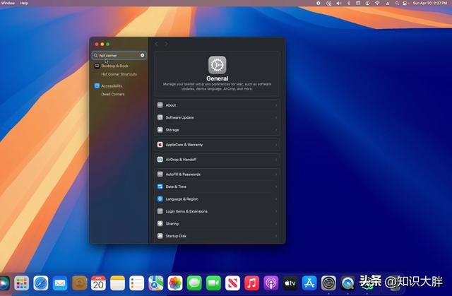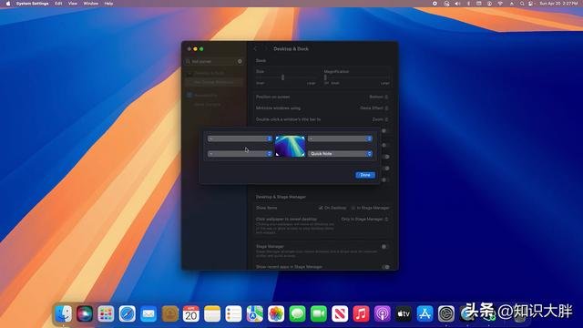 系统设置 → 桌面和程序坞 → 热角