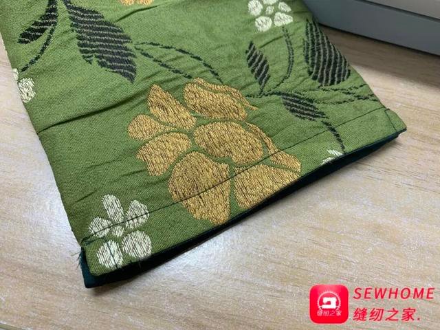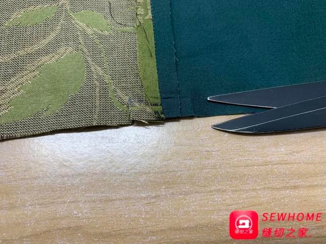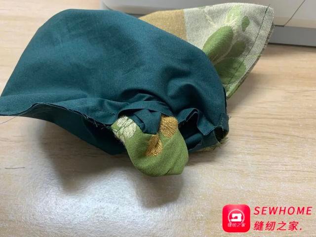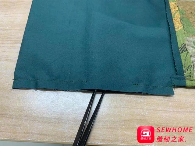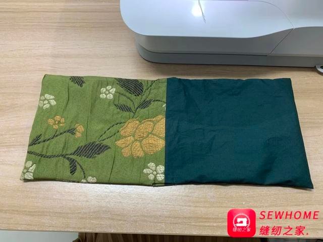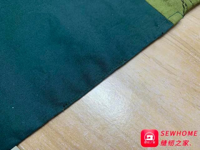 表布与表布正面相对,里布与里布正面相对,对齐接缝后缝合四边,其中里布的一面需留一个开口。