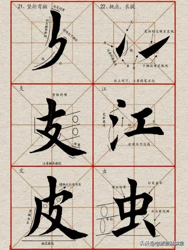 从内容覆盖来看,课程涵盖了点画(右点、左点、上竖点)、撇捺(长撇、正捺、平捺)、钩折(竖弯、斜钩、横折)、提画(竖提、小撇提)等几乎所有基础笔法类型,全面覆盖了楷书的核心技巧。无论你是零基础的入门者,还是希望提升笔法水平的进阶学习者,都能从中找到适合自己的学习内容。
