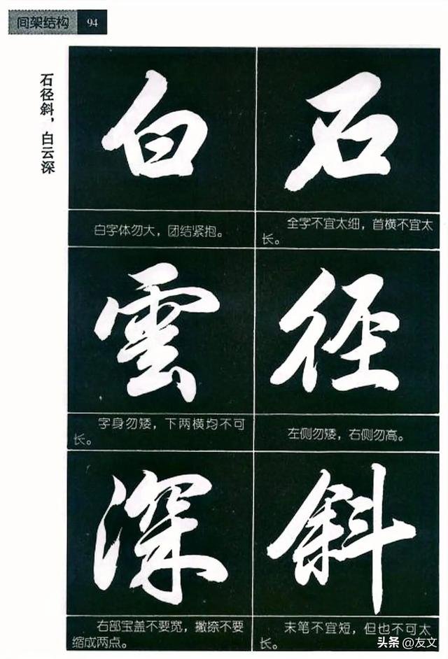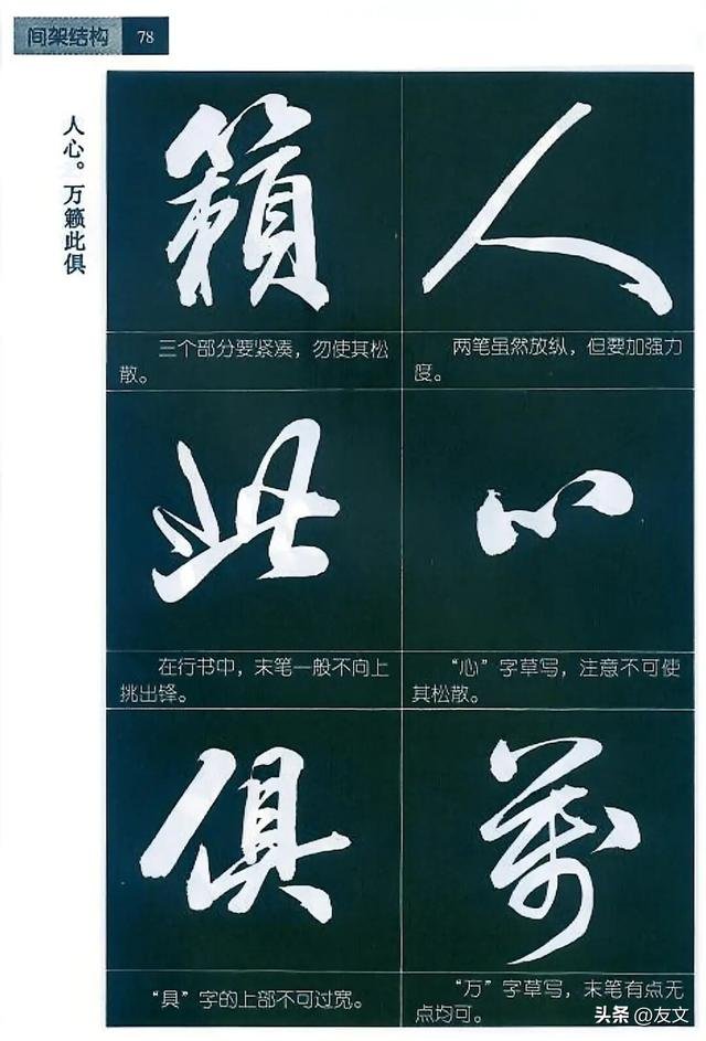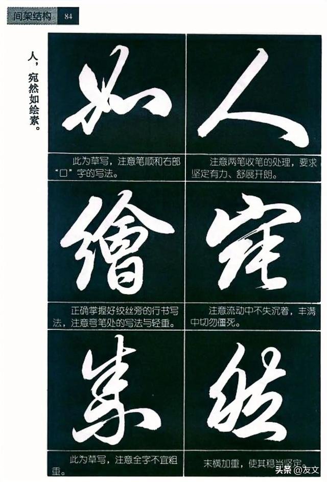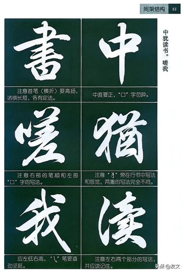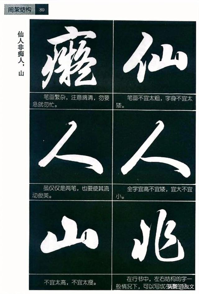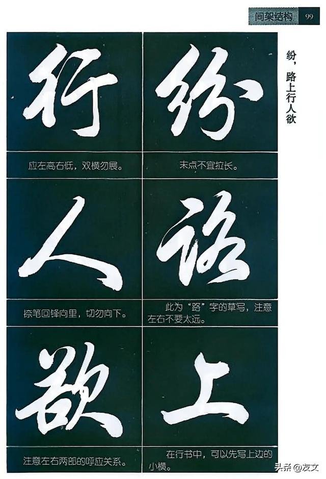 田英章的《毛笔行书笔法标准教程》是一部具有时代特色的行书教学书籍,是书法教育领域的一部重要教材。作为一位杰出的书法教育者,他致力于解决“如何让大众快速掌握行书书写”的问题,通过清晰的笔法分解,对行书的基本笔法和常见的连带方式进行了系统归纳,并以图示形式展示,总结出明确的“起笔、行笔、收笔”动作和路径。结构法则清晰:归纳出行书结字的规律,如主次、疏密、俯仰、向背等,并通过实例反复训练,使结字从“感性认识”转变为“可操作的方法”。风格稳定:书中所示范的行书风格以二王、赵孟頫为代表的典雅流畅、端庄秀丽为基础,经过田英章体系的规范化处理,形成工整、匀称、美观且易于识别的实用行书面貌,具有鲜明的个人特色。注重规范与形态:教程强调笔法的准确性和结构的稳定性,追求书写结果的“美观”和“规范”,对于行书艺术中更微妙的节奏变化、个性表达、偶然趣味等方面涉及较少。