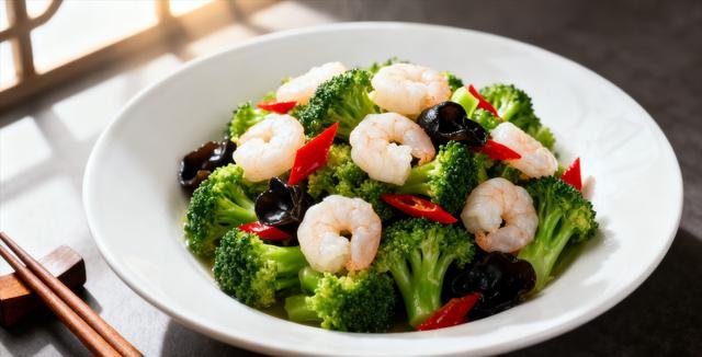 2. 虾仁炒西兰花(高蛋白 + 高纤维)