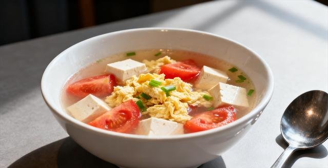 5. 番茄鸡蛋豆腐汤(低热量、饱腹感强)