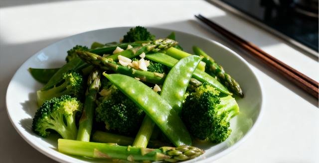 蔬菜洗净沥干。锅中放少量油,炒香蒜末。加入蔬菜大火快炒一到两分钟,至变软。加盐调味后即可出锅。