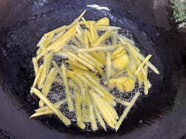 步骤一:热锅加油,放入适量姜片爆香,这样炒出来的鸡肉更香。