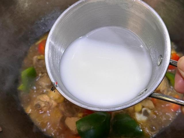 步骤三:加入清水,没过鸡块,盖上锅盖焖煮约10分钟。