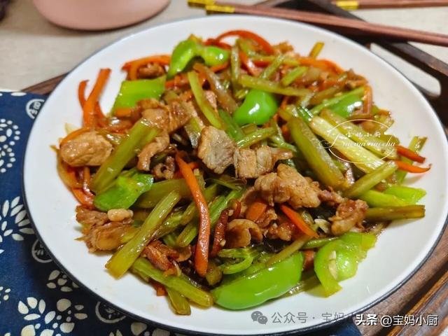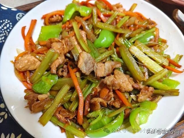 这道菜用到的食材并不多,但每一样都很重要,特别是芹菜。整道菜总共使用了四种主要材料:猪肉、芹菜、青椒和胡萝卜,色彩鲜艳,营养均衡,是一道兼具美味与颜值的下饭菜。这些食材也都很耐储存,家中常备一些,随时可以用来做菜,非常适合寒冷天气。