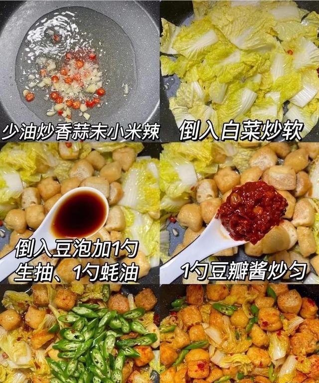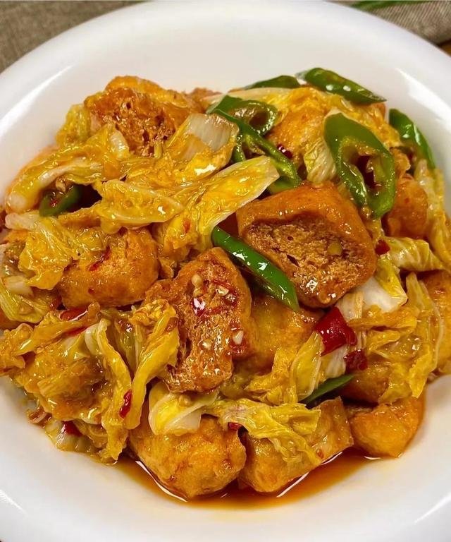 蒜蓉鱼片讲究的是鲜和快。鱼片要薄如纸,蒜末要现剁,不能太细,要有颗粒感才香。油热后下蒜,香味出来后立即放入鱼片,翻炒两下就要出锅,多等一秒就会老。我家那口旧砂锅,炖豆泡最合适。白菜垫底,豆泡泡软后铺上,倒点高汤,焖到汤汁收浓,吸一口,全是鲜味。